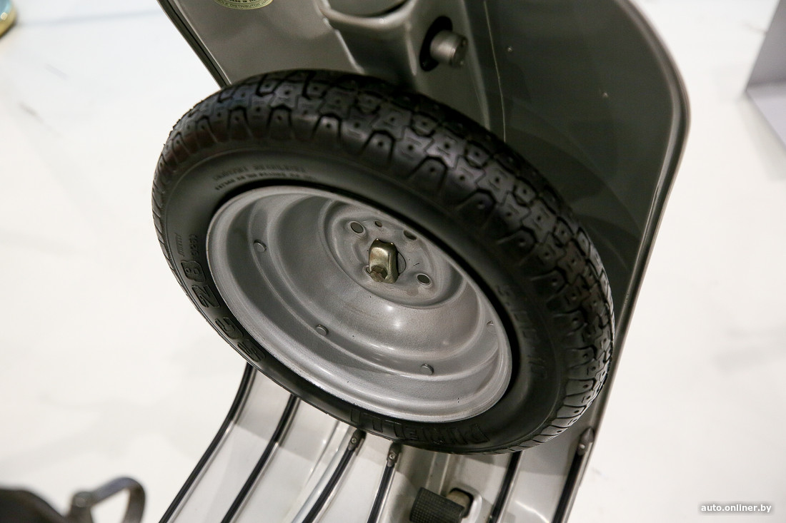 — Ключевая особенность модели — безрамная конструкция. Еще одно необычное решение — силовой агрегат качался вместе с задним колесом на маятниковой вилке, — рассказывает хранитель коллекции. — Думаю, вы наверняка знаете о минском «близнеце» «Веспы», который называется «Весна». Еще один, более возрастной клон — это «Вятка» ВП-150, выпускавшаяся в 1950-х.