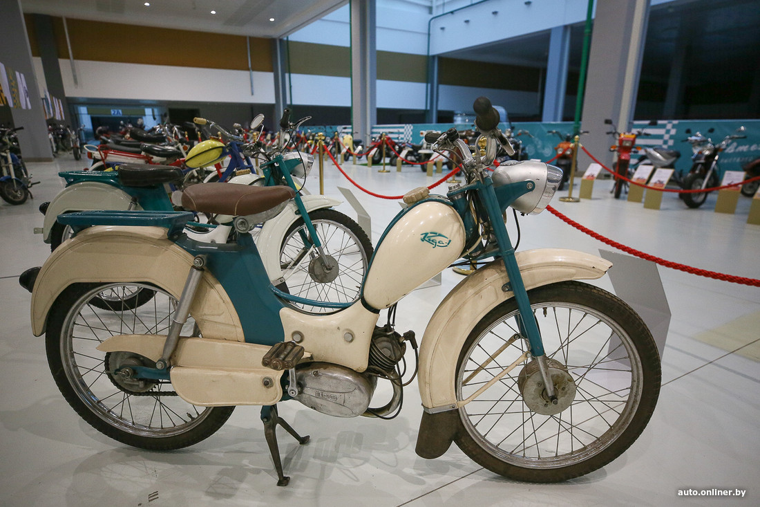 А вот техника, сошедшая с конвейера Рижского мотозавода. Это первый двухскоростной мопед советского производства, выпускавшийся в 1961—1965 годах. Пробег у него — меньше тысячи километров.