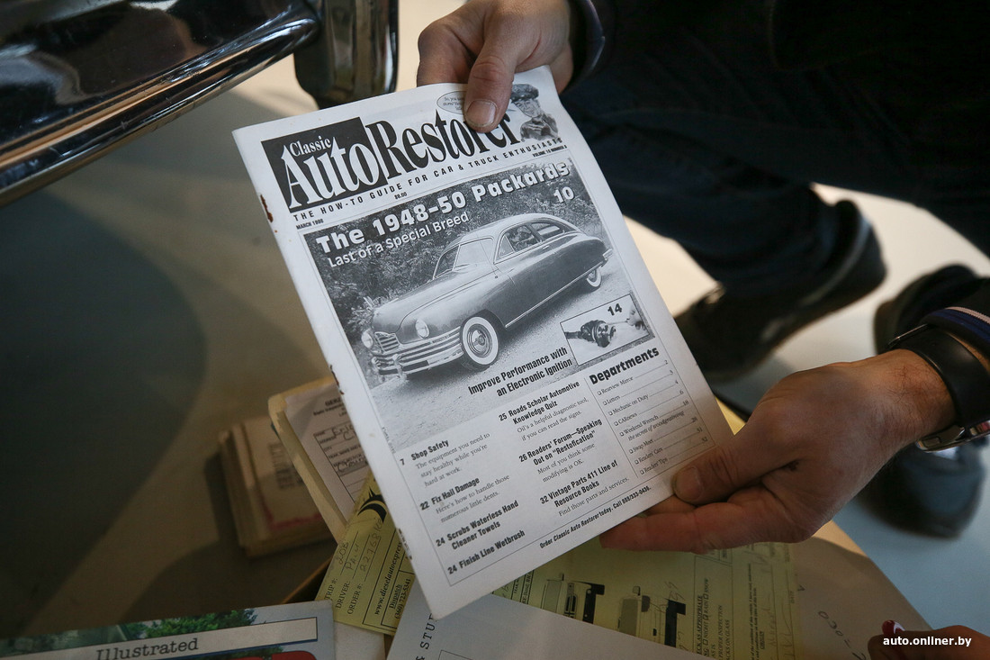 — Под капотом, который откидывается на бок, рядный 8-цилиндровый двигатель объемом 5,4 литра. Конкретно этот автомобиль мы покупали у белорусского владельца, машина была не единожды замечена на автофестивалях. В стране она с 2022 года, — продолжает собеседник. — Как рассказывал предыдущий владелец, этот Packard очень долго и сложно добирался к нам: плыл через весь океан, побывал в разных точках мира, пока не попал в Литву, а потом в Беларусь.