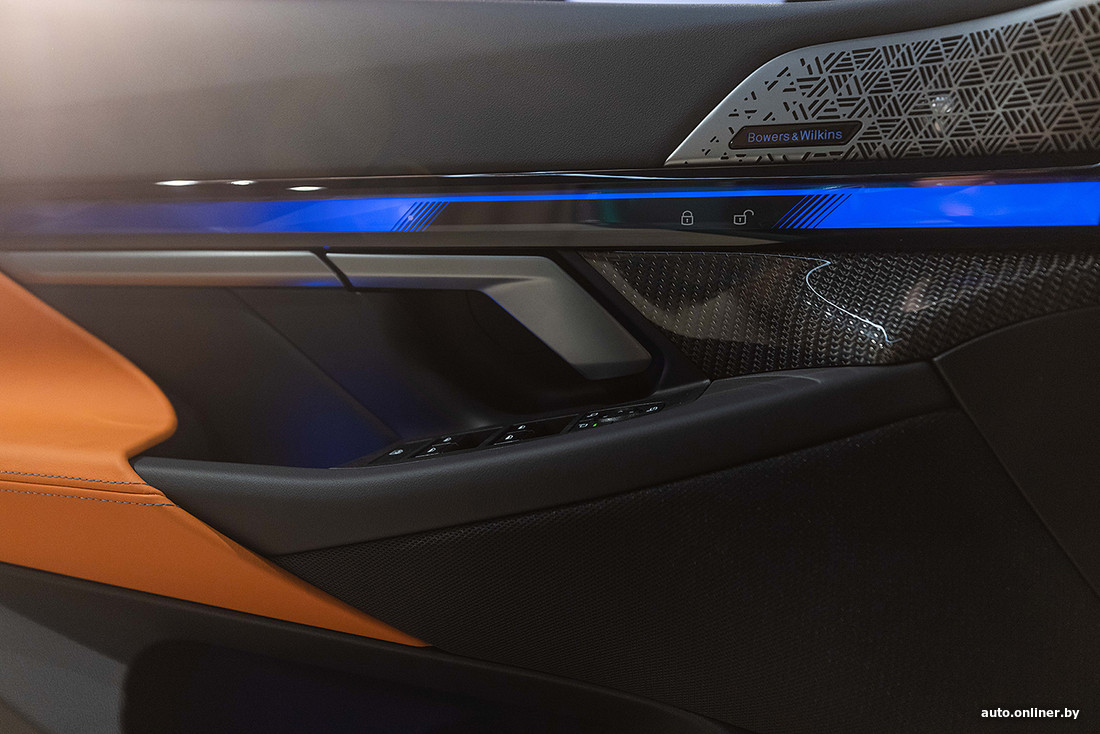 В салоне — кожаная отделка элементов, изогнутая панель с 12,3-дюймовым приборным экраном и тачскрином мультимедиа на 14,9 дюйма, четырехзонный климат-контроль. По желанию можно добавить карбоно-керамические тормоза, продвинутые ассистенты вождения и парковки и другие опции. Отделка выполнена из кожи Merino.
