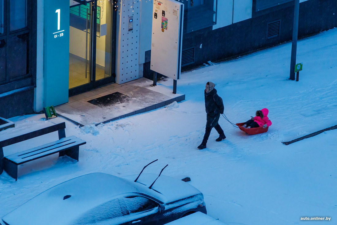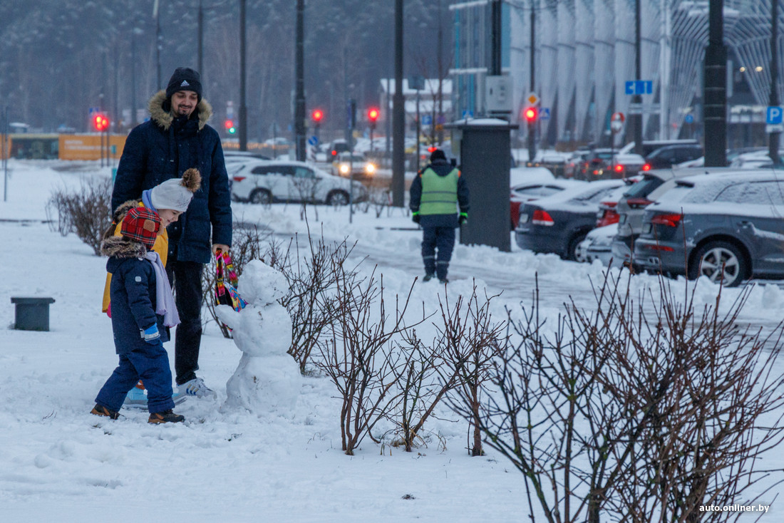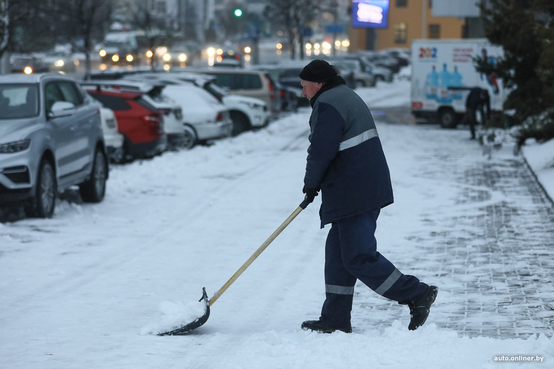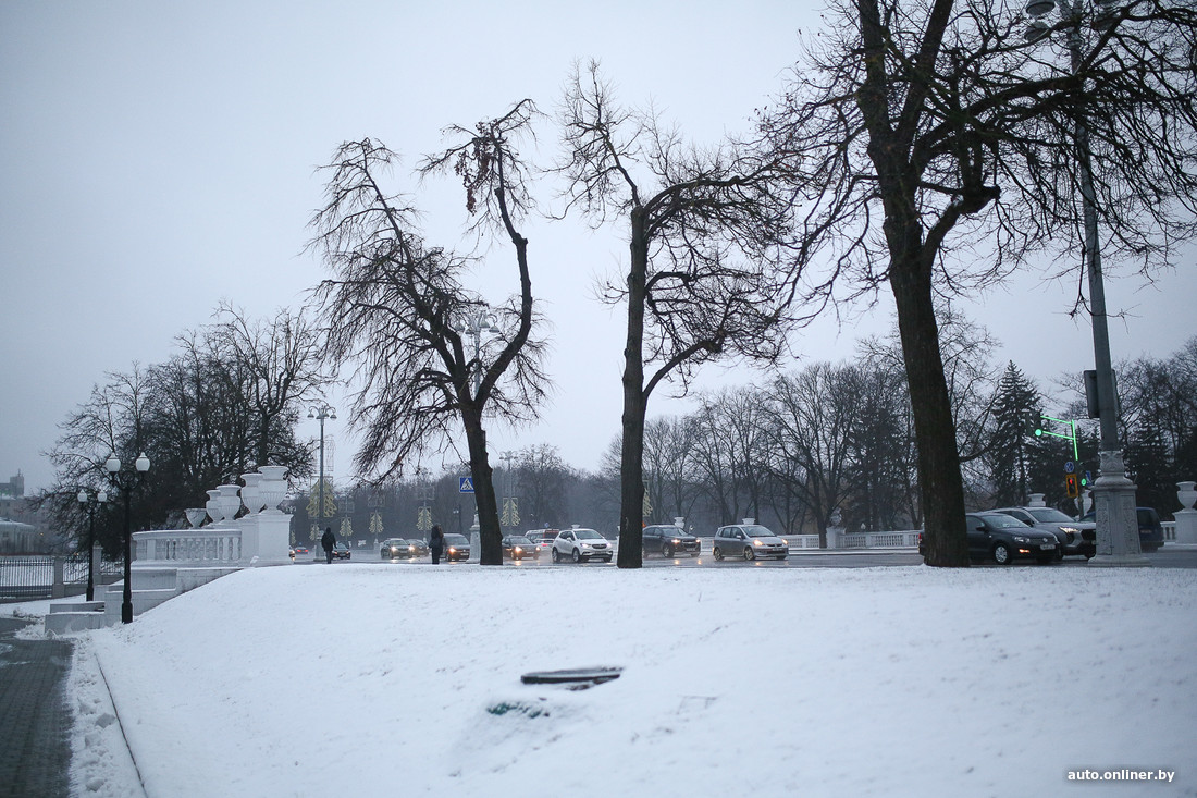 Утро понедельника в Минске началось с красивого белого пейзажа за окном, со щетки в руке и пыхтения вокруг автомобиля. Возможно, в первый раз этой зимой настолько по-настоящему. Снегопад в столице, на дорогах пробки, на такси коэффициенты.