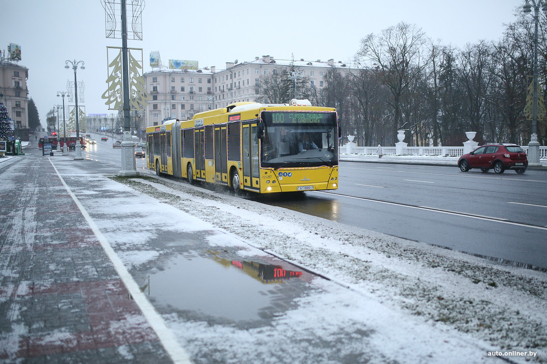 «В связи со скоплением транспорта из-за погодных условий движение общественного транспорта осуществляется с нарушением графика до 30 минут», — предупреждает «Минсктранс».