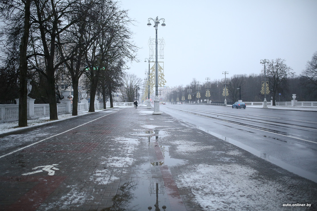 При этом сравнительно тепло. По прогнозу Белгидромета, сегодня в Минске ожидается +4...+6 градуса Цельсия. Снегопад сменится дождем.