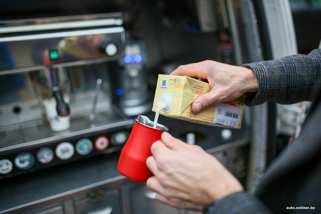 — Таких кофемашин, как у меня, в Беларуси сейчас, мне кажется, штук пять, не больше. Фишка еще и в том, что я могу разогреться прямо в дороге: приехал, открыл двери — и ты готов делать кофе, — поясняет Павел. — Машина надежная, за эти восемь лет проварила, наверное, тысяч сто порций кофе. И я по-прежнему в ней уверен. А все, что новое, красивое, — оно, к сожалению, ничего не выдерживает.
