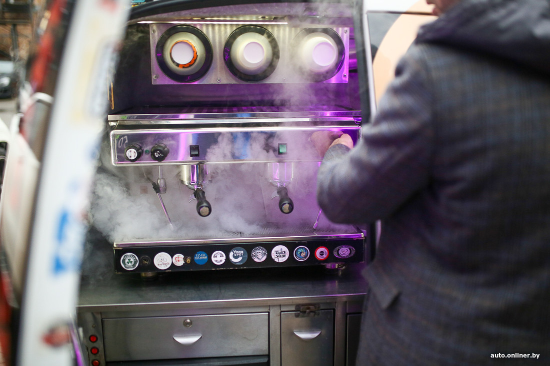 — Это и электрофизические измерения (раз в полгода получаешь заключение энергетиков), и проверка газового оборудования, и санитарная обработка, и обслуживание кофемашин и агрегатов, — рассказывает Павел. — Техосмотр — он проходится без проблем: там важно, чтобы все исправно функционировало, а всем необходимым параметрам машина отвечает. А вот когда ставишь на учет, приходится снимать все оборудование, потому что в этих автомобилях VIN проставлен где-то в глубине кузова, до него еще нужно добраться. Оклейку машины, всю рекламную продукцию, включая оформление кофейных стаканчиков, нужно регистрировать, вносить в реестр.