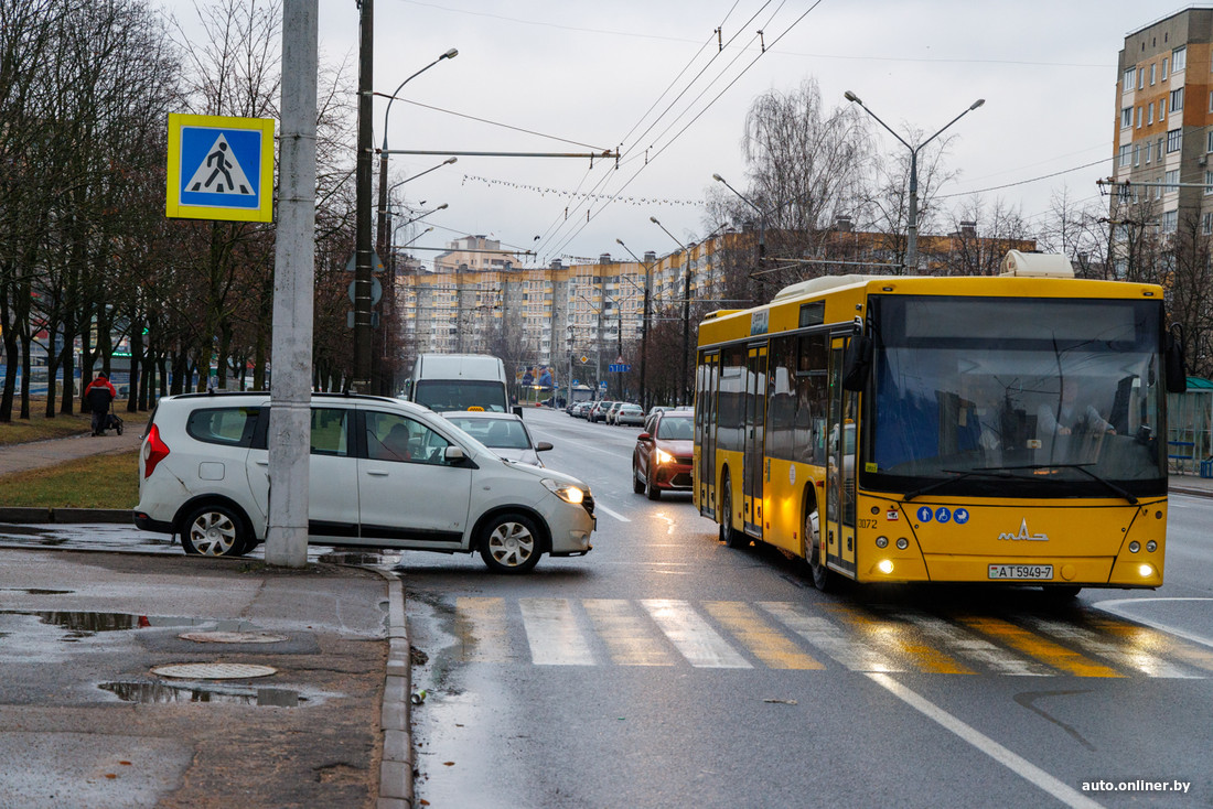Для примера возьмем ситуацию, которая произошла 30 декабря около полудня на улице Неманской в Минске. Водитель автомобиля Volkswagen (такси) выезжал со второстепенной дороги на главную в непосредственной близости от автора видео, который имел преимущество. Тому пришлось спешно тормозить, чтобы избежать столкновения.