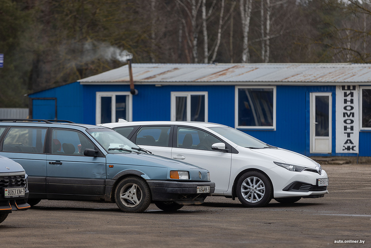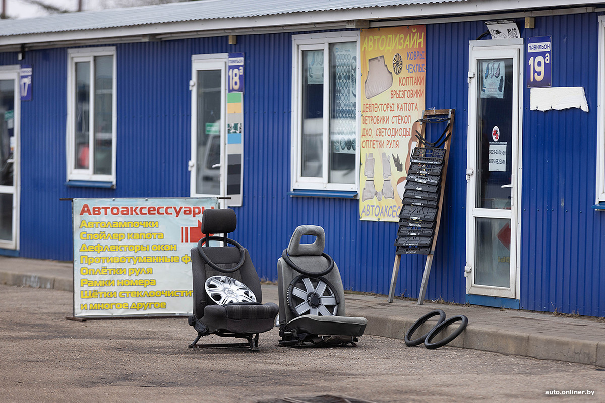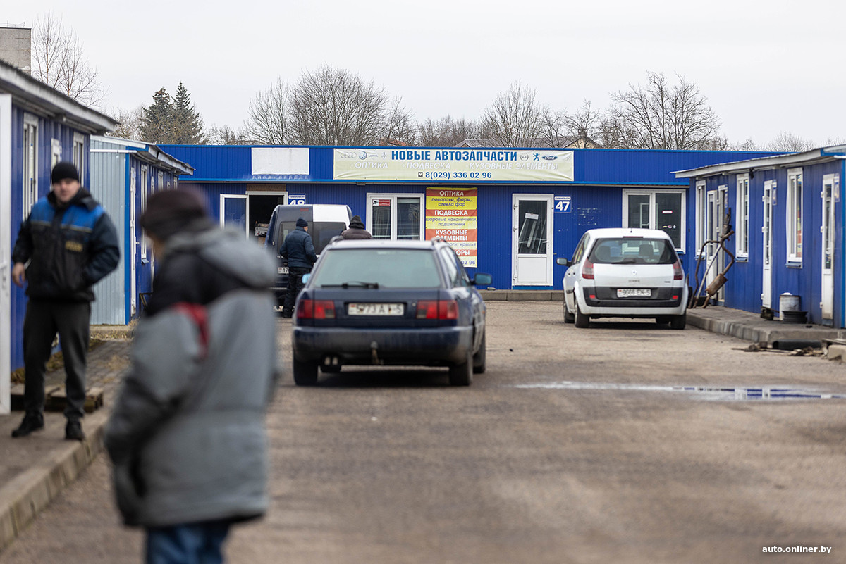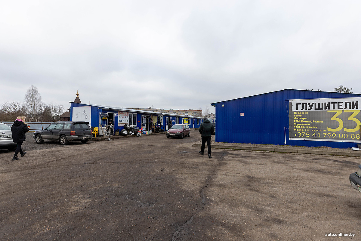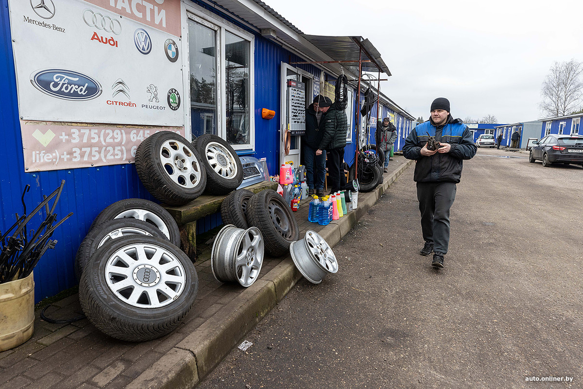Площадка большая, огороженная. Так и просится сюда какой-нибудь автохаус, но машин в Углах в продаже нет. На парковке «Пассатики» и «Гольфы» ждут возвращения своих владельцев: людей немного, но на дворе будний день, поэтому неудивительно. Подходим к продавцам запчастей: многие из них переехали в Углы с той самой ул. Труда.
