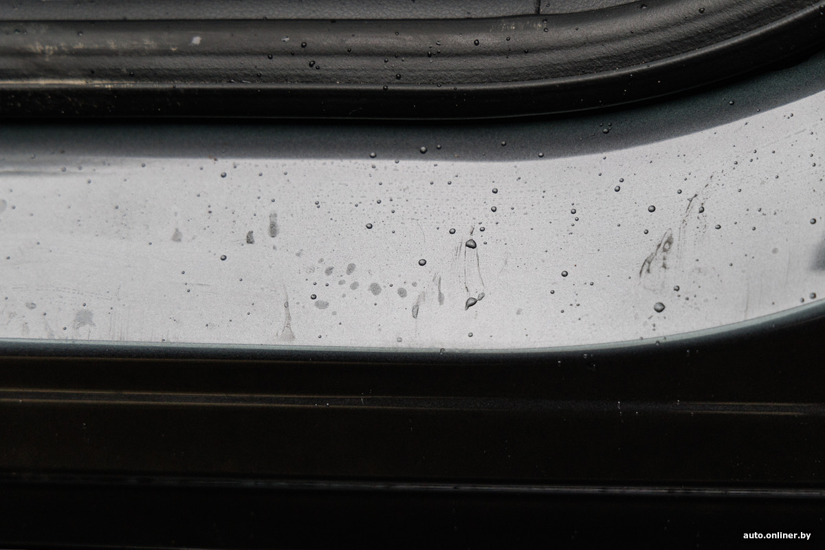 Перемещаемся на другую сторону. Внизу проема водительской двери есть царапины. Подобный «косяк» имеется также на заднем дверном проеме и на переднем бампере.