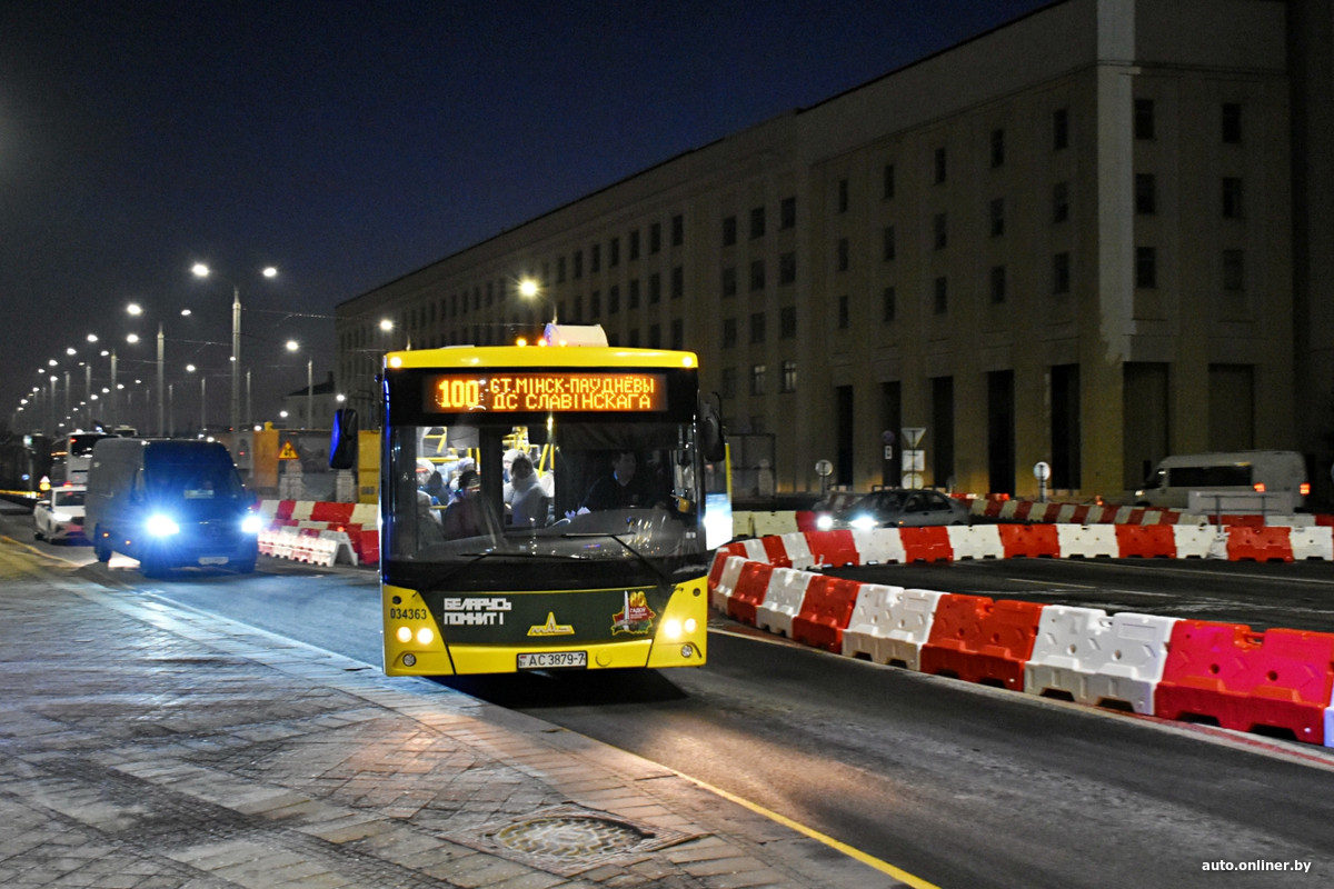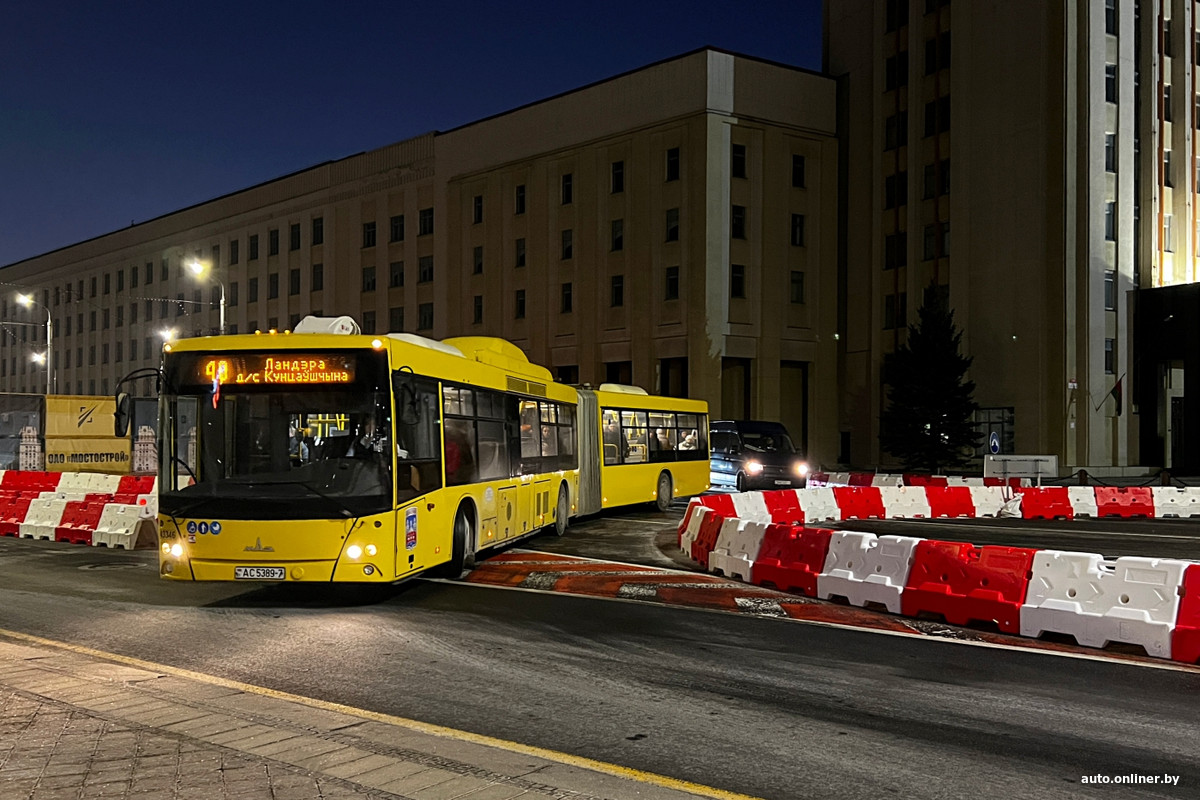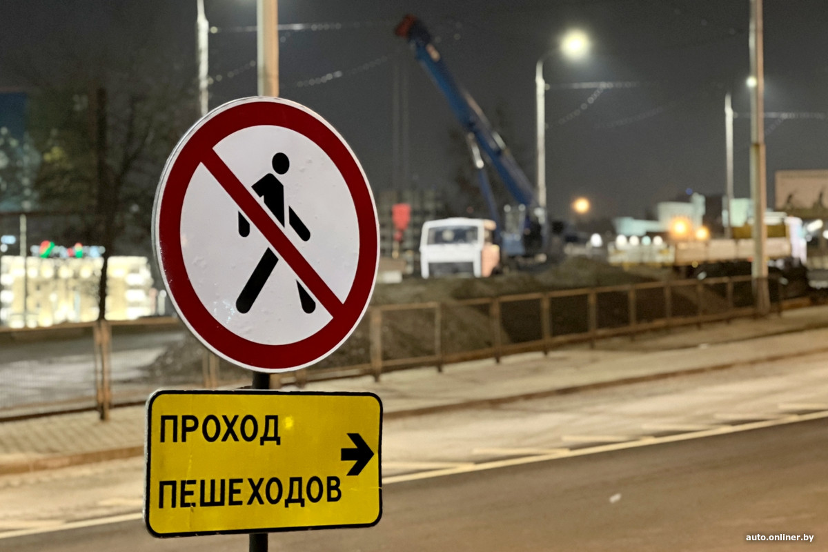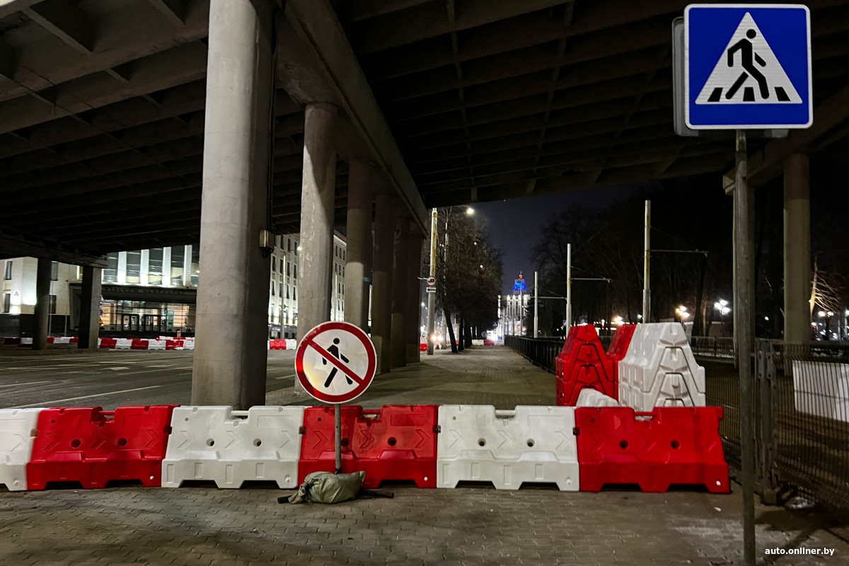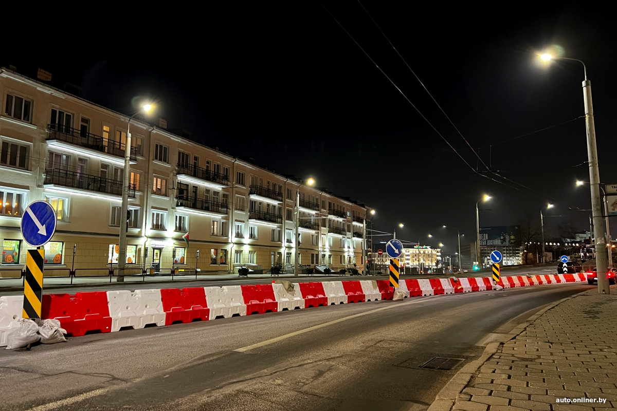 Для всех транспортных средств закрыт сам путепровод и короткий отрезок ул. Бобруйской прямо под ним — работы на объекте уже ведутся. Объезд для маршрутных транспортных средств организован через площадь Независимости — напротив главного корпуса БГУ построена временная круговая развязка.
