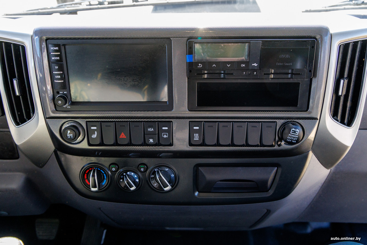 И пару слов про силовой агрегат. Дизельный двигатель ЯМЗ-534 объемом 4,4 л развивает 169 л. с. и 664 Н·м и работает в паре с 6-ступенчатой МКП собственной разработки. Автомобиль оснащен моторным тормозом.