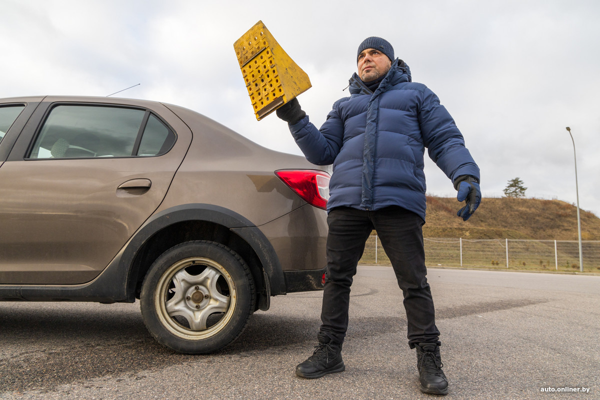 Хотя есть и более гарантированный способ: противооткатный упор. У меня такие есть — мало ли что. Подпер ими автомобиль, и ничего не боишься.