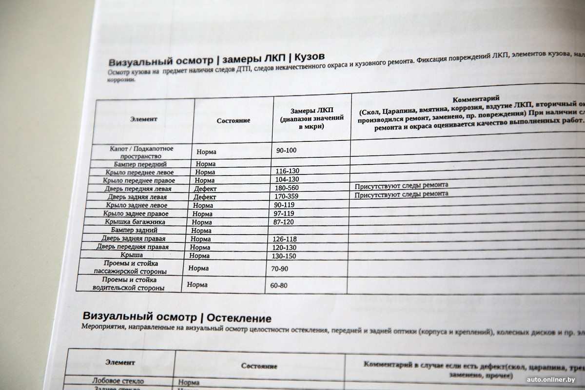 Но был ремонт после ДТП: передняя и задняя двери по левому борту перекрашивались, и там толщина ЛКП составляет 180—560 и 170—359 микрон против 90—150 заводских микрон на остальных элементах.