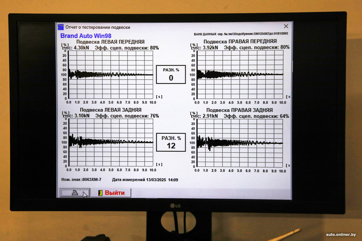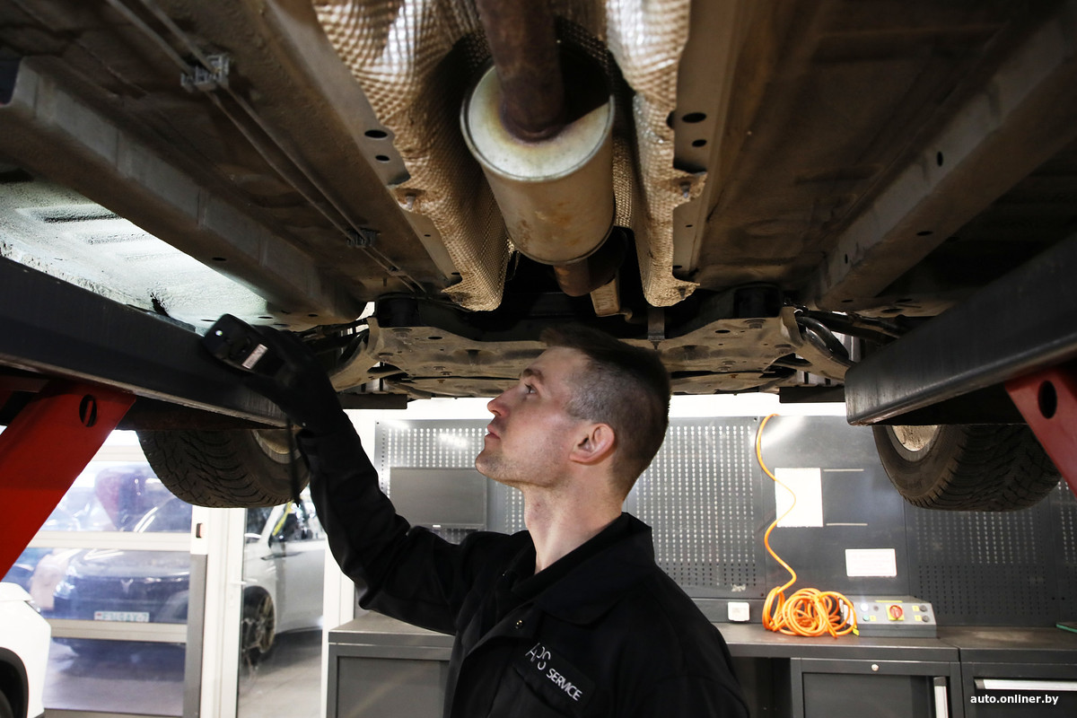 Измерения, кстати, проводили не мы, а сотрудники фирменной СТО, куда мы пригнали наш Shine GS на осмотр и компьютерную диагностику. Автомобиль подняли на подъемнике, проверили состояние подвески и тормозов, уровни технических жидкостей (тормозную — еще и на содержание воды), затем загнали на вибростенд для оценки эффективности амортизаторов и «почитали» блоки сканером.