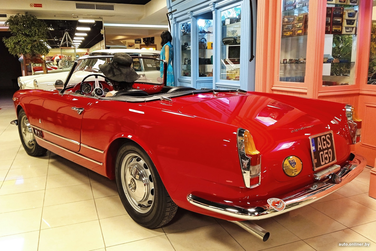 Самая эффектная из них — «двухдверка» Giulietta Sprint Speciale, собранная в 1960 году. Эта машина с кузовом из-под пера Франко Скальоне, работавшего в Bertone, не просто редкая (в начале 1960-х выпущено немногим более 1300 единиц), но и в отличном состоянии — выглядит купе так, будто только покинуло заводские ворота! Под капотом — 1,3-литровый двигатель мощностью 100 л. с.