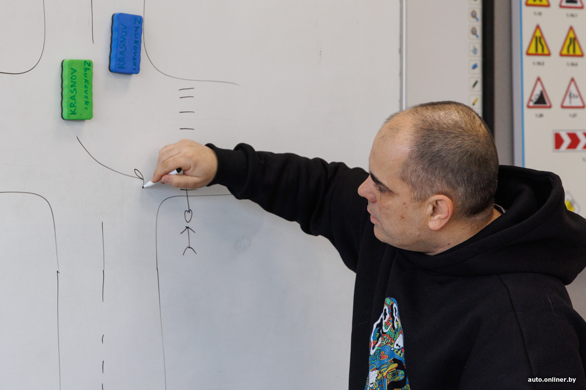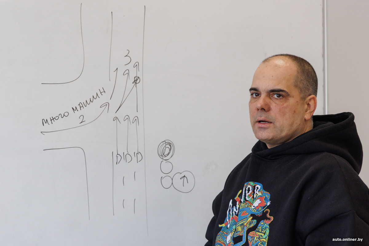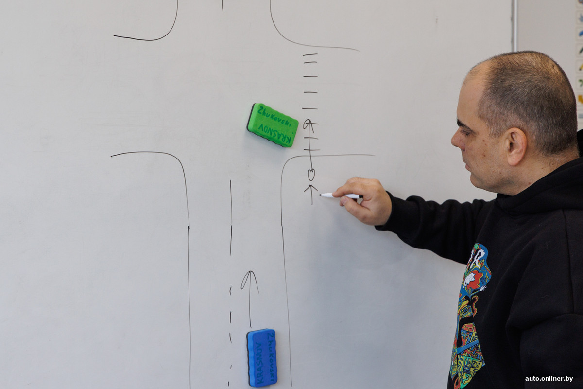 — Ну ладно, я к таким ситуациям отношусь спокойно, потому что на кругах нужно друг другу помогать. Действительно, случается, что ты попадаешь на круг и уже там узнаешь, как ехать можно, а как нельзя. А всё: тебе нужно влево перестроиться, но у тебя там уже машины едут, — признает преподаватель. — И это должно войти в привычку: кто-то ошибся на кругу — помоги ему.