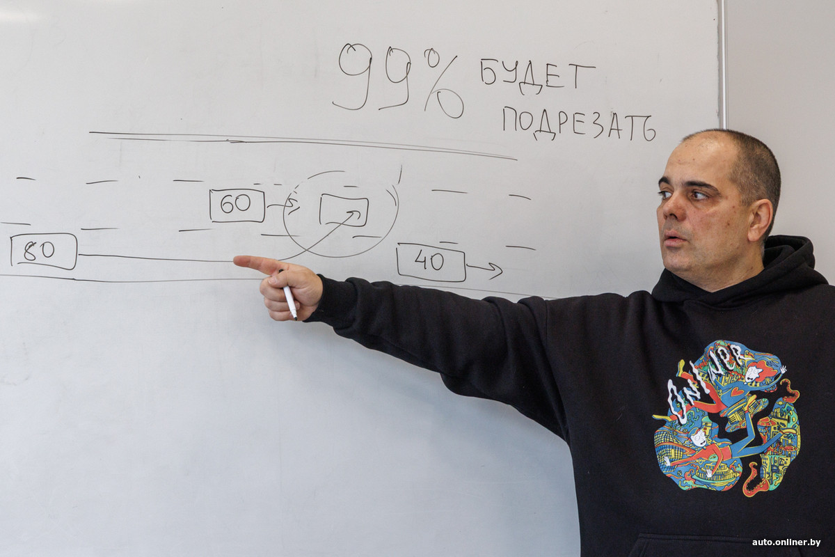 — Настолько безответственное поведение людей, конечно же, сильно возмущает! Ну хочешь ты из крайней правой полосы повернуть налево — уже странно, но это полбеды. Зачем же ты при этом разговариваешь по телефону и ведешь себя совершенно невнимательно? Это же дорога! Так нельзя делать! Раньше бы за такое... Ну, это уже к делу не относится, — инструктор явно сдерживается.