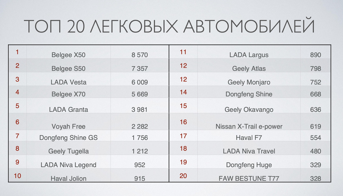 Сегодня Автомобильная ассоциация «БАА» поделилась статистикой продаж легковых автомобилей в 2024 году. О том, что рынок продемонстрировал двукратный рост, мы знали и ранее. Не являются сюрпризом и лидирующие позиции брендов Geely и Belgee. А вот дальше начинается самое интересное.