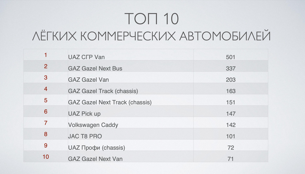 А вот продажи легких коммерческих автомобилей в прошлом году снизились.
