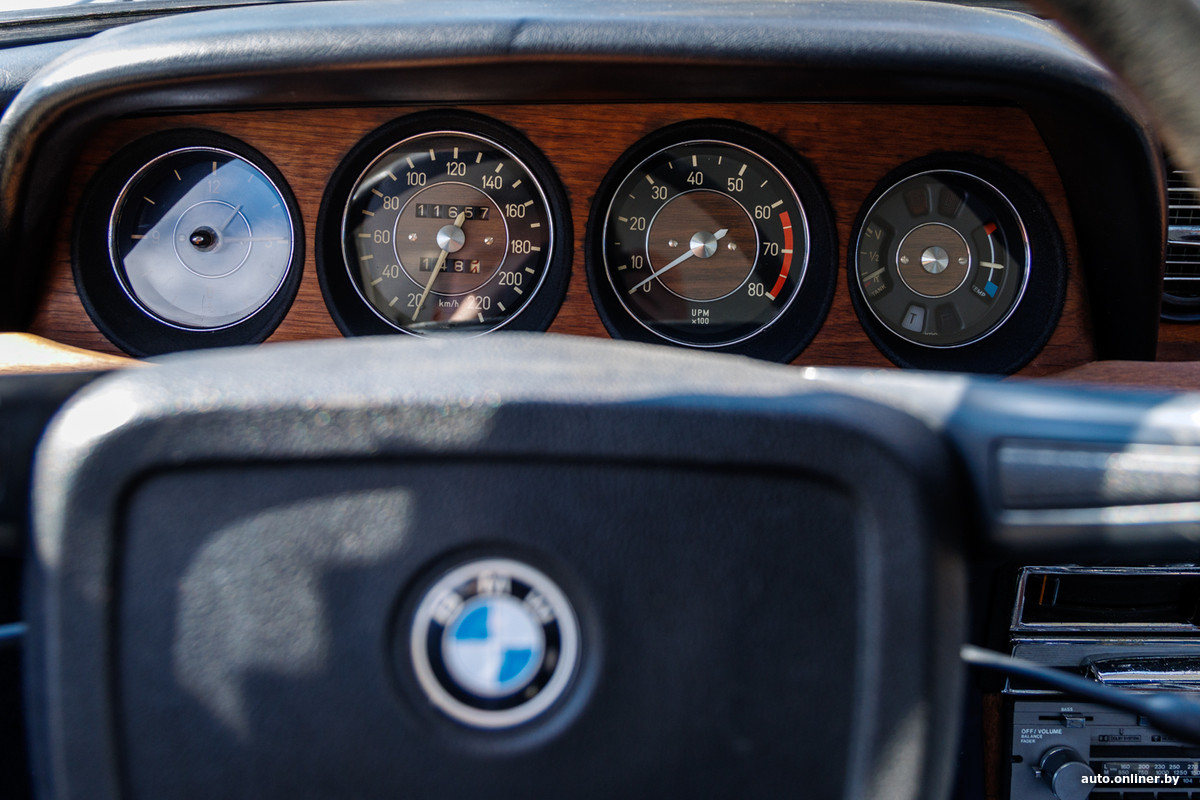 Вместо оригинального руля — пластиковая баранка от Е30. Магнитола, кстати, тоже не родная: нашли похожую по стилю, благо она оказалась рабочей. И уплотнитель стекла подбирали от другой модели BMW. Что вообще с доступностью запчастей? Алексей утверждает, что в Европе детали на старые BMW найти можно, и 2000 С не является исключением. Но уровень цен соответствующий.
