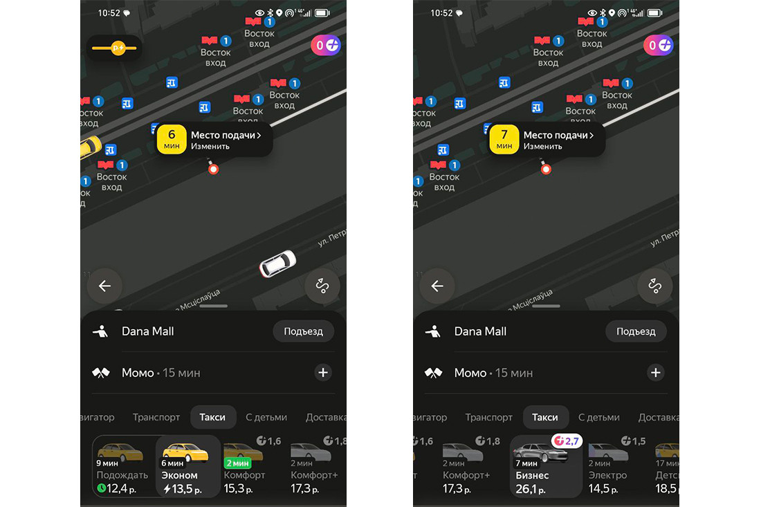 В качестве первого среза возьмем комфортное время первой половины дня. Утренний час пик уже прошел, на часах 10:50. Особого ажиотажа быть не должно, лидер рынка и новичок находятся в равных условиях.