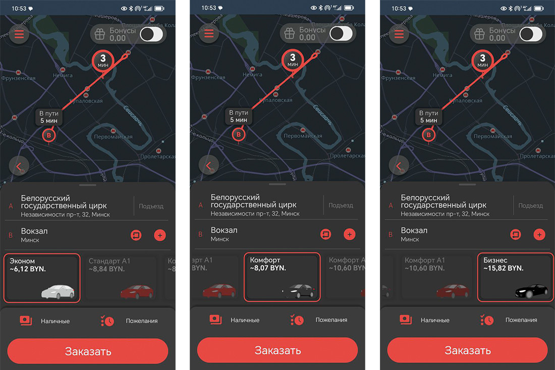 Время самое что ни на есть рабочее, сравниваем цены на такси. Снова три условных варианта. Были свои сюрпризы.