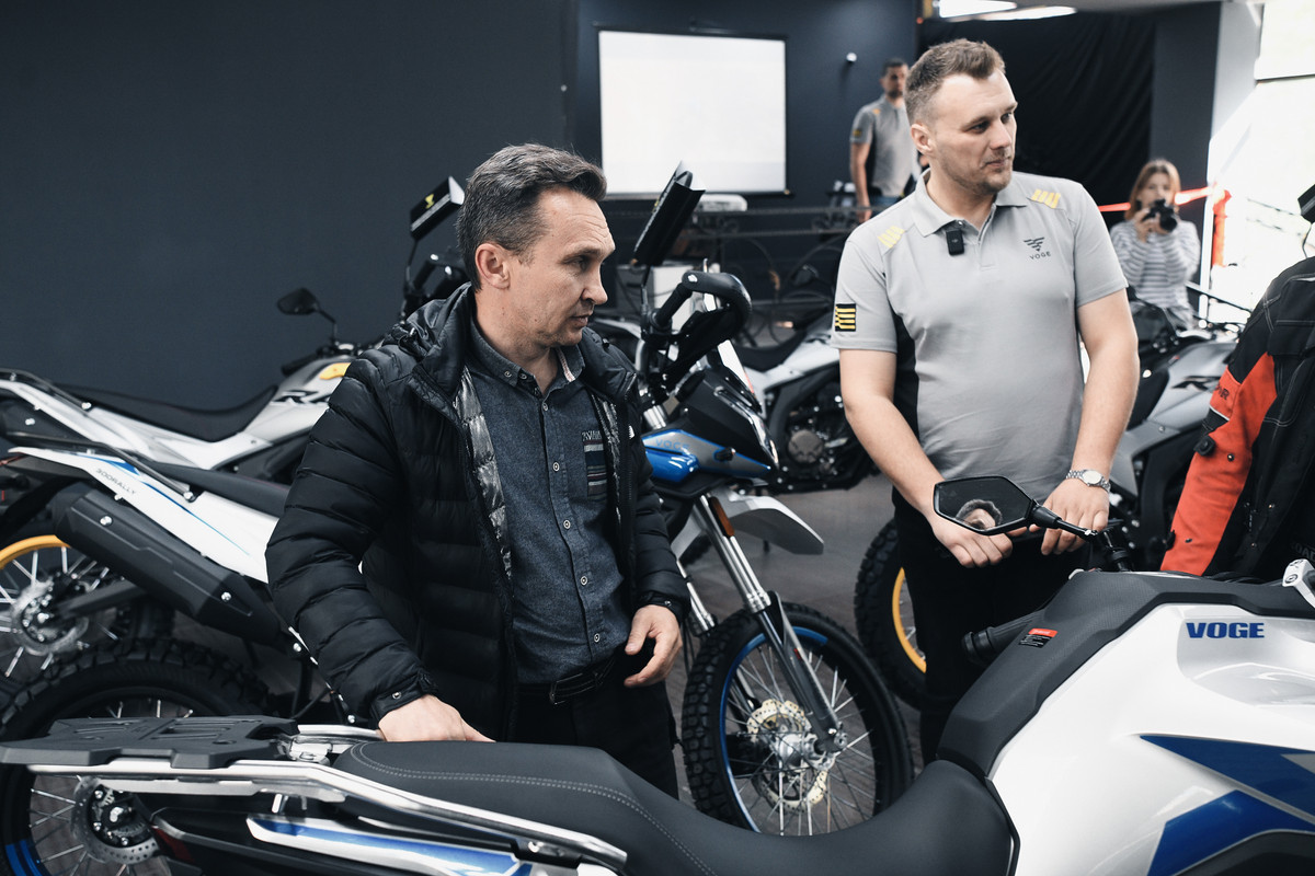 — Наша команда выбрала бренд Voge, потому что мы видим огромный потенциал для наших клиентов: это целая развитая экосистема, которая включает в себя сервисные программы, гарантийные обязательства и реальные каталоги запасных частей. Не нужно беспокоиться об обслуживании, запчастях и в случае ремонта. Наш главный менеджер уже имел опыт работы с двигателями и техникой производства компании Loncin (она выпускает Voge), поскольку работал с маркой BMW Motorrad у официального дилера более 2 лет, — рассказал руководитель шоурума.