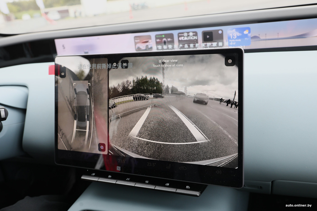 Как тогда обеспечен обзор назад? Внутреннее зеркало — это на самом деле экран, на который транслируется картинка с камеры заднего вида. Вполне рабочее решение, которое, кстати, применяется и на других моделях марки. Но руль — снова квадратный, и при маневрировании вопросы с удобством такого решения возникают все те же. Как минимум это требует привыкания. Но ездовые впечатления в комплексе в целом положительные.