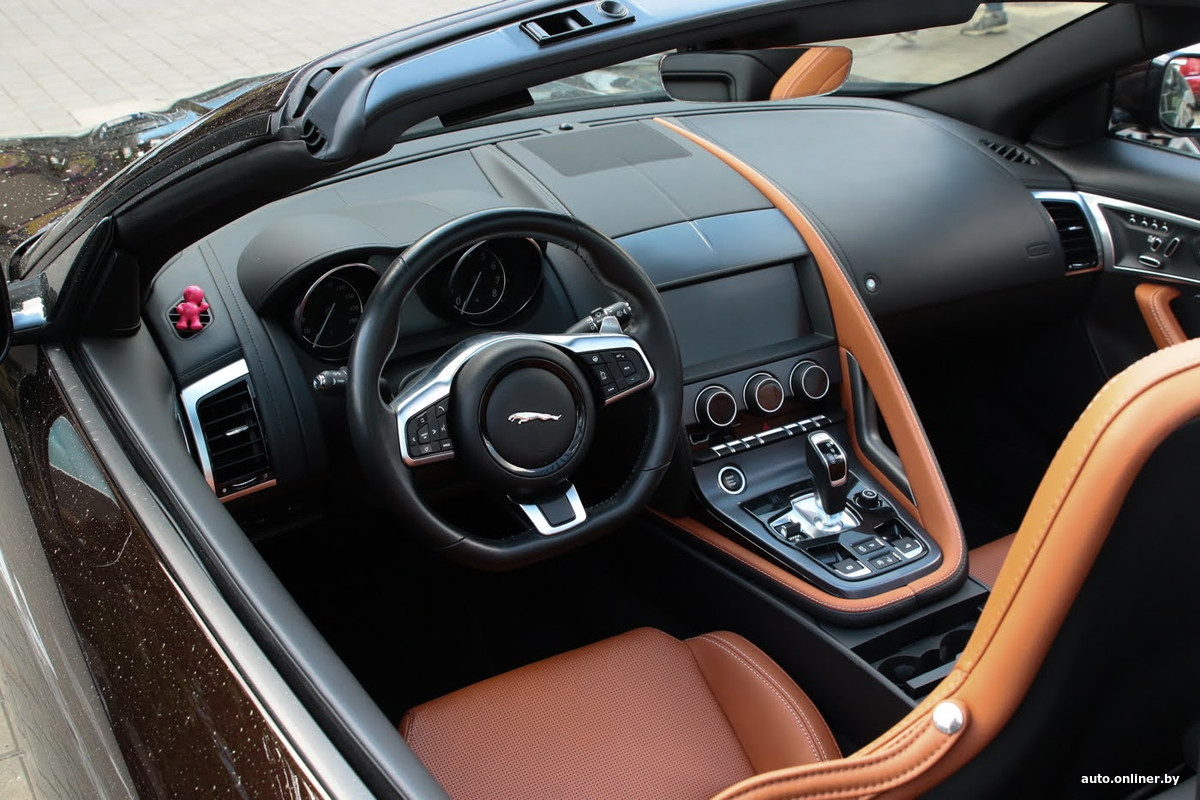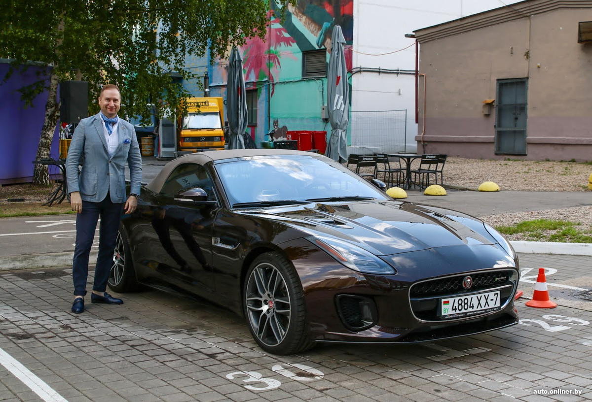На этом F-Type приехал участник клуба Юрий. Правда, он тоже не на своей машине, хотя активно ею пользуется. Мужчина продал свой собственный F-Type и сейчас ждет лимитированную версию R75 2024 г. в. Ее пообещал продемонстрировать на следующих «сходках», но пока говорим про бурого «красавца» 2019 года выпуска.