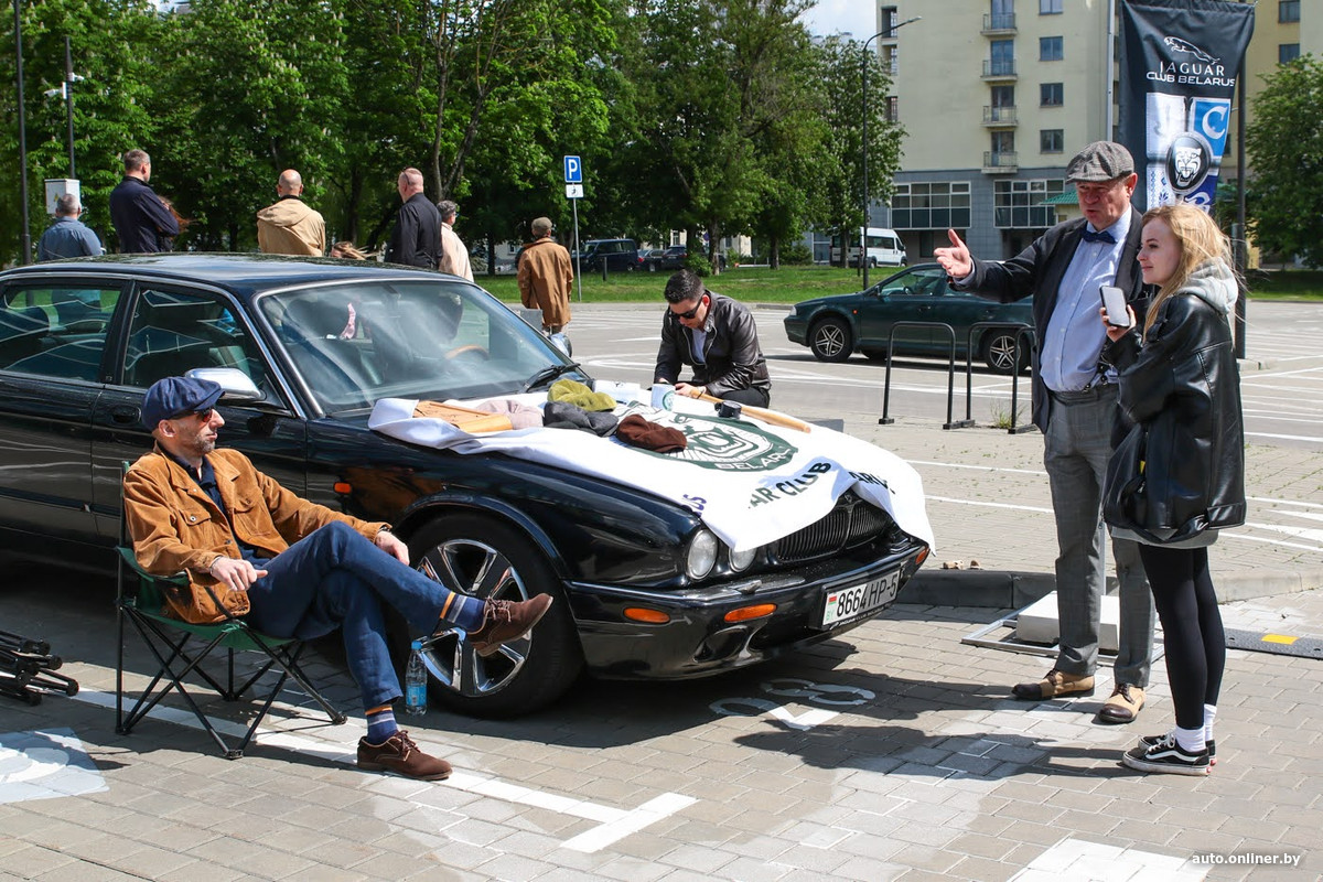 Проявим уважение к возрасту и начнем с самого почтенного участника выставки. Это Jaguar XJ (X308) 1988 года выпуска с 4-литровым V8. На нем приехал Дмитрий, руководитель клуба, хотя он признался: машина не его, а другого участника. Тот уехал за границу, а авто предложил выгулять, чтобы оно не скучало. Все-таки среди других «котиков» веселее.