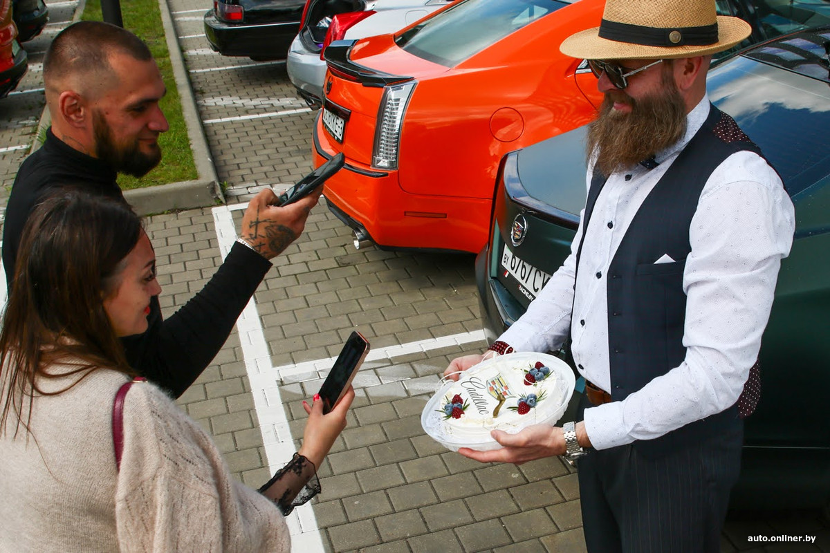 Пока общались с «ягуарщиками», «кадиллаки» успели разрезать брендированный тортик и обсудить насущные вопросы с обслуживанием. Белорусский клуб Cadillac чуть моложе, чем клуб Jaguar. В этом году он отмечает семилетие, в нем 140 участников. Как рассказал Денис, руководитель клуба, началось все с того, что московские любители бренда решили создать белорусский чат. Попасть в него можно по ссылке.