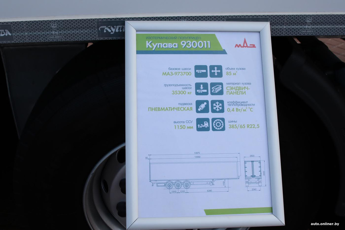 Минский автомобильный завод представлен скромно: всего один магистральный тягач в паре с полуприцепом-изотермой «Купава».
