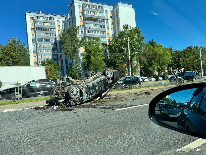 «По предварительной информации, около 09:00 водитель Mercedes не справился с управлением и совершил наезд на разделительное ограждение, в результате чего автомобиль опрокинулся. В аварии никто не пострадал», — заявили в ГАИ Минска.