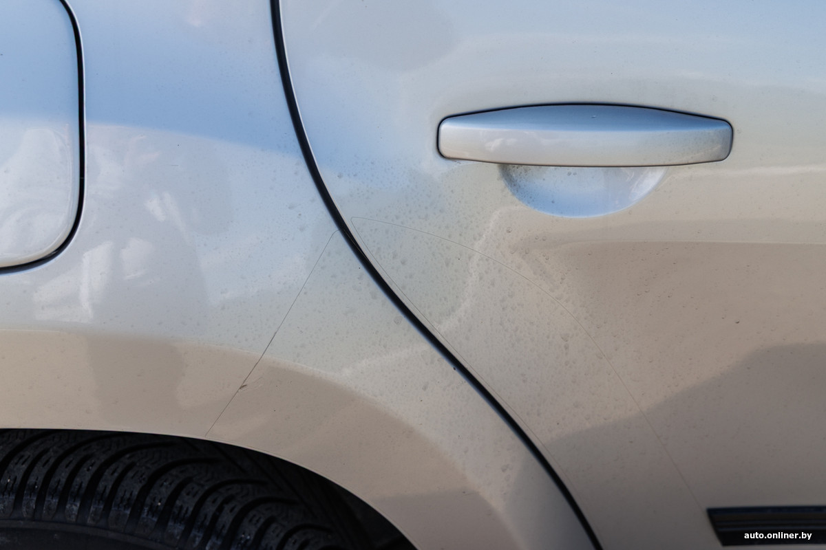 На задние крылья нанесена пленка — она была уже при покупке. Со своей задачей защита справляется, сколов краски на выступающих задних арках нет. Видно, что владелец следит за автомобилем, и тот отвечает на эту заботу примерным поведением.