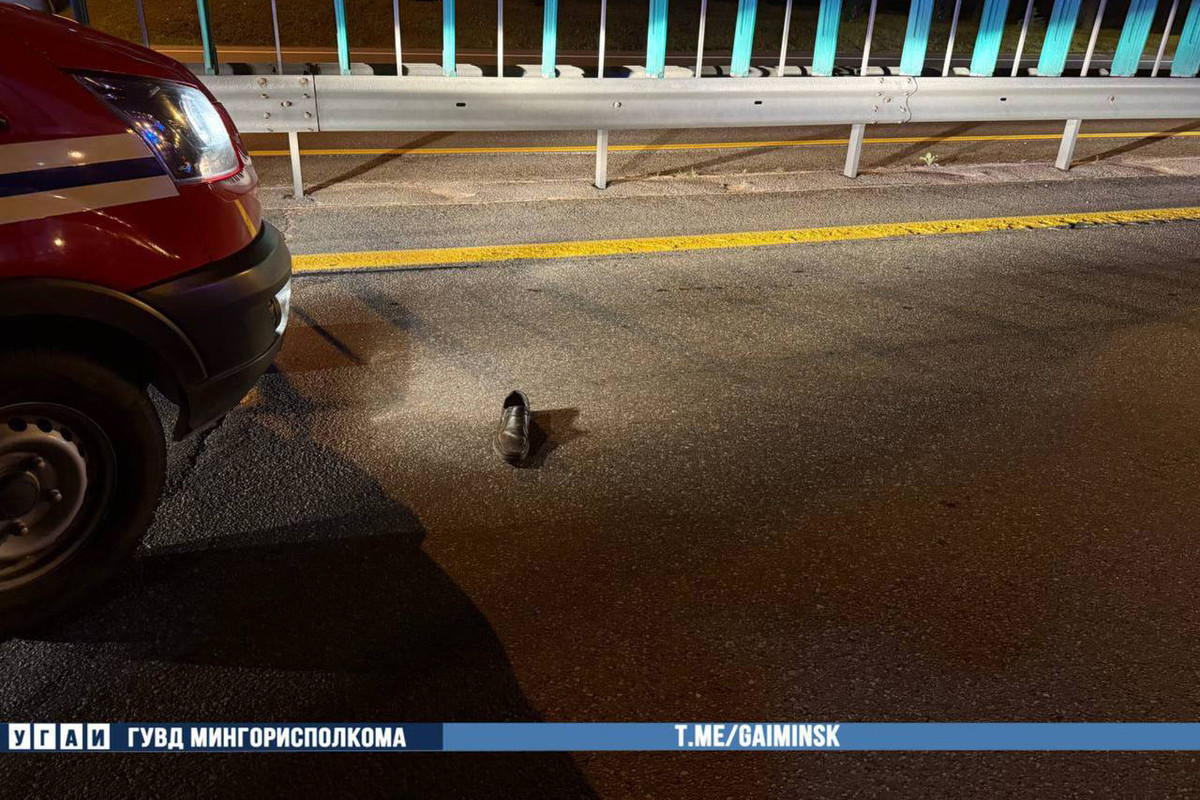 Пешеход жив, его доставили в больницу. Информация о личности пострадавшего не раскрывается. На фото виден мужской ботинок, что позволяет предположить, что пешеход — мужчина.