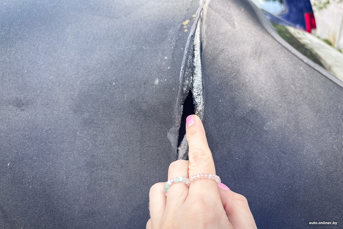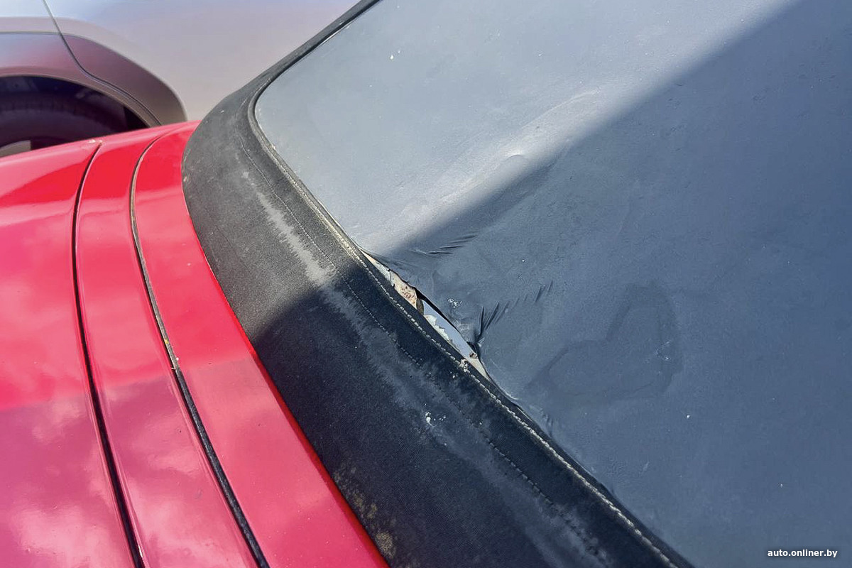 Но давайте сделаем скидку на то, что автомобилю 26 лет и продается он за $3450 в эквиваленте. Просим продавца открыть крышу: он начинает делать это уверенно, но что-то идет не так — она совсем не хочет складываться. Мужчина заверяет, что все работало — нужно просто попросить владельца еще раз продемонстрировать, что и как нажимать.