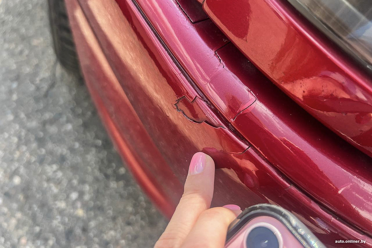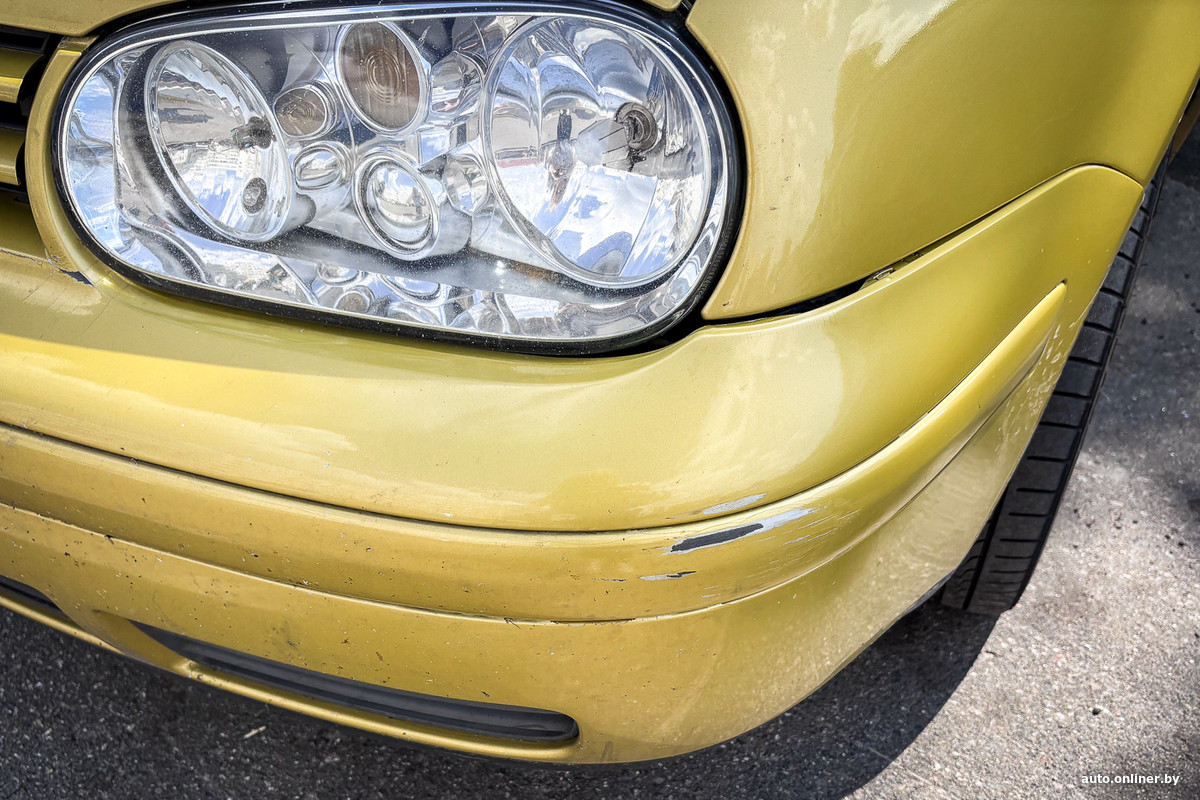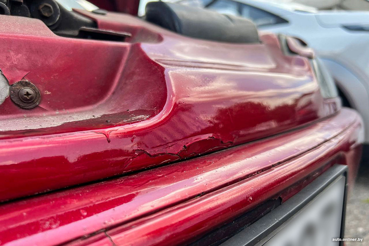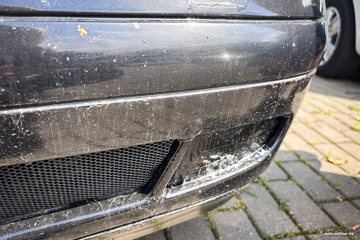 Очевидно, кузов 21-летней машины нуждается в обновлении. Автомобиль, как рассказала хозяйка, побывал в «паровозике», отсюда повреждения переднего бампера.