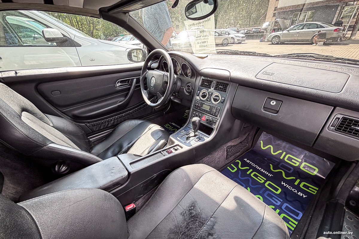 Перед нами кузов R170 1998 года выпуска. 2,3 литра, бензин и наконец-то «автомат». На фотографиях родстер выглядит так, будто завидовать будут все соседи. Но при детальном рассмотрении вживую понимаешь, что автомобиль стоит перекрасить. Есть вздутия, кое-где потрескалась шпатлевка, не очень красиво замаскированы отверстия под противотуманки...