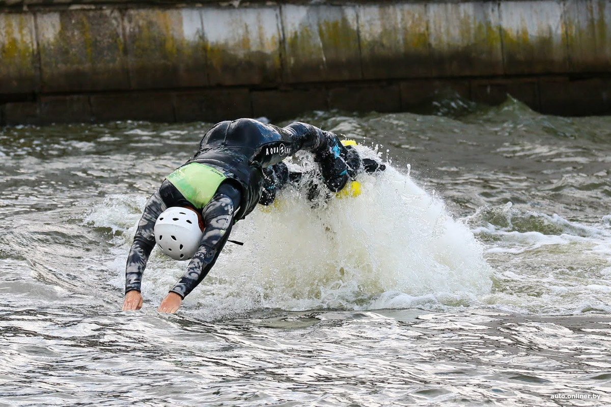 Главное шоу мероприятия прошло на воде. Спасатели продемонстрировали, как можно спасти тонущего человека разными способами. И если методы спасения при помощи лодки и водного мотоцикла нам привычны и знакомы, то способ с флайбордом оказался диковинным.