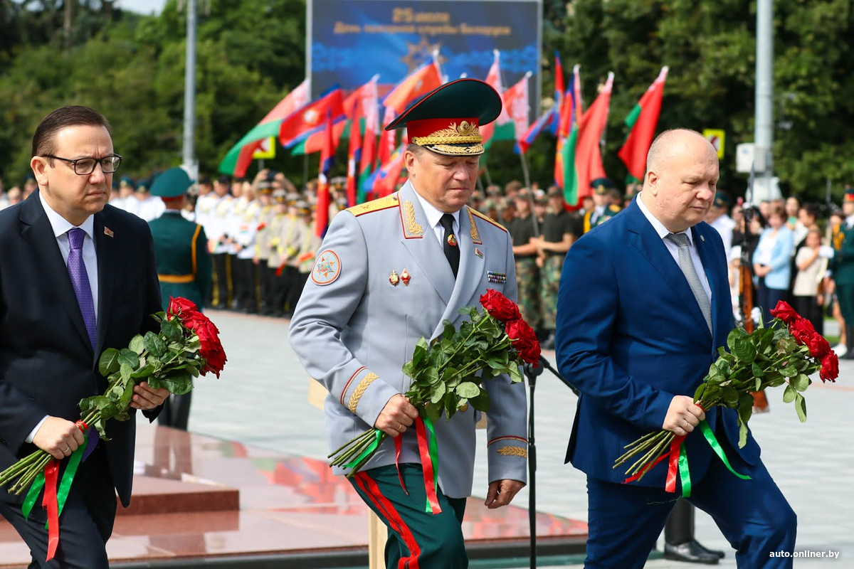 Мероприятие началось с торжественного митинга. Почетные гости и ветераны службы во главе с министром по чрезвычайным ситуациям Вадимом Синявским возложили цветы к подножию монумента Победы.