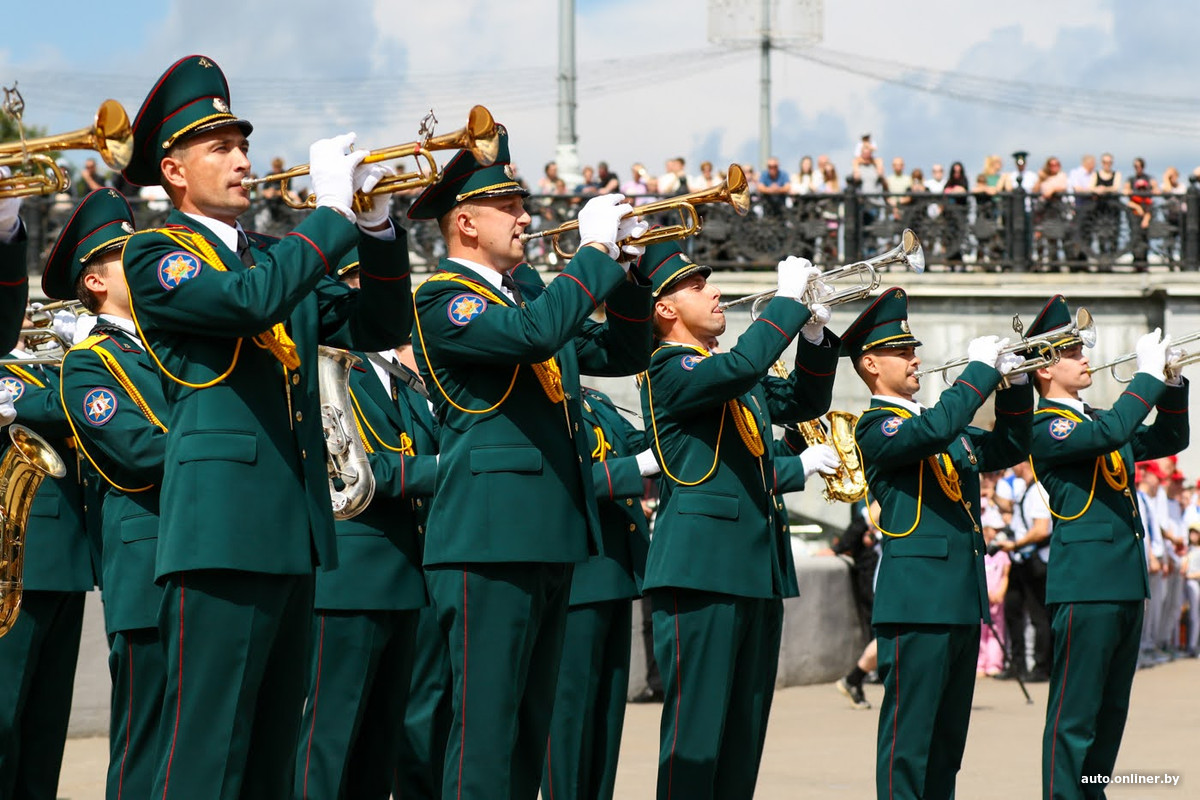 Далее действие перенеслось непосредственно в сам Центральный парк. Представители МЧС развлекали зрителей плац-концертом взвода почетного караула и дефиле сводного духового оркестра.