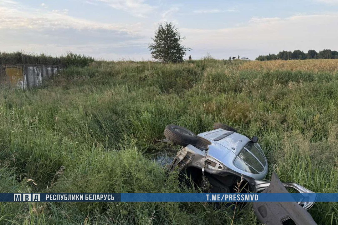 На загородной дороге Citroen опрокинулся в кювет, два человека погибли
