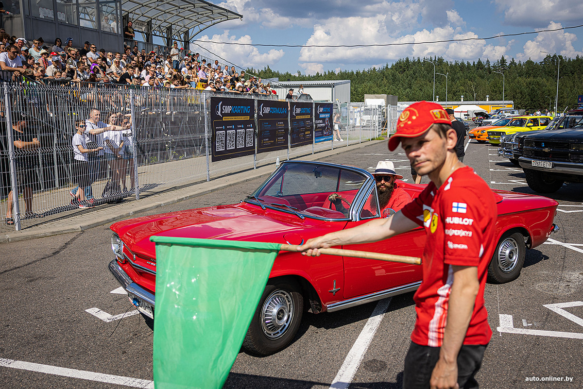 К слову, подавляющее большинство участников успели «засветиться» и на других автомероприятиях. Так, на снимках ниже к старту готовится Chevrolet Corvair с Русланом Цурко за рулем — организатором крупной выставки Vintage Day.