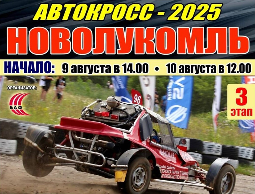 Очередной, третий, этап чемпионата Беларуси по автомобильному кроссу пройдет в Новолукомле, что в Витебской области. Благодаря близости региона к границе с РФ ожидается достаточно массовое прибытие гонщиков из Смоленской области. Традиционно гонки в этом месте собирают большое количество зрителей. Вход на мероприятие свободный.