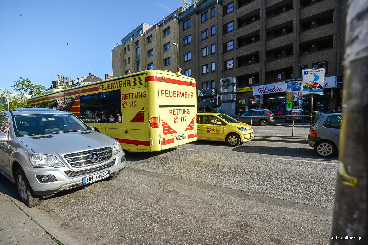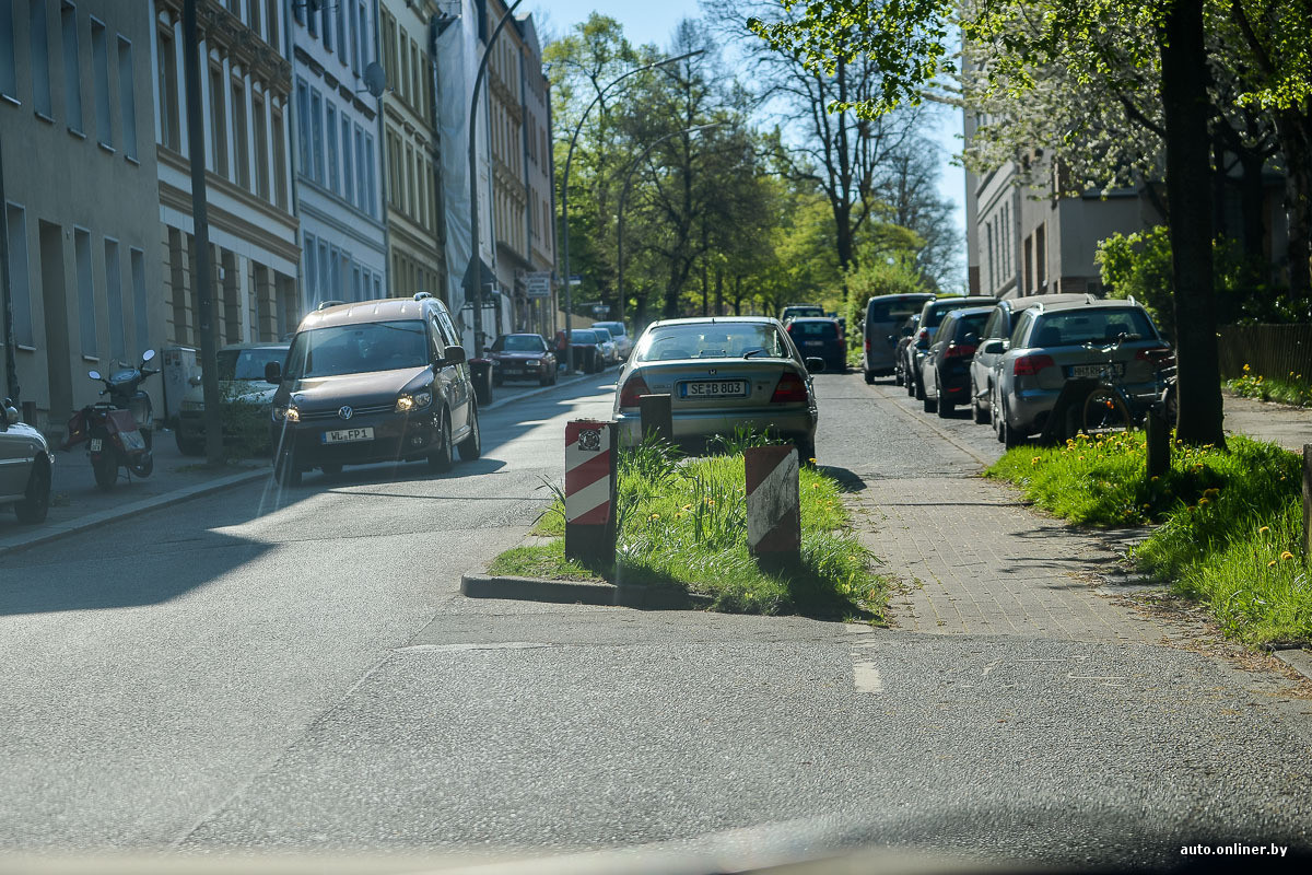 — У немцев на экзамене экзаменатор сидит в авто всегда сзади. За рулем — сдающий, справа от него — инструктор. Но экзаменатор следит за ситуацией, он контролирует спидометр, смотрит по зеркалам и говорит, куда ехать, а ездить нужно повсюду. Были и узкие улочки с ограничением 30 и пешеходными зонами, были разные виды перекрестков, кольца, разные виды парковки. Никакой площадки, никакой парковки по палочкам нет — только реальные условия. Я парковался возле супермаркета. Передом, задом, диагональная парковка — все это нужно проделать на экзамене. «Припаркуйся между тем Mercedes и Bentley», — это реальность в Германии и страшный сон для сдающего экзамен в Беларуси. Обязательно появление на автобане: так проверяется, может ли сдающий ехать с большой скоростью.