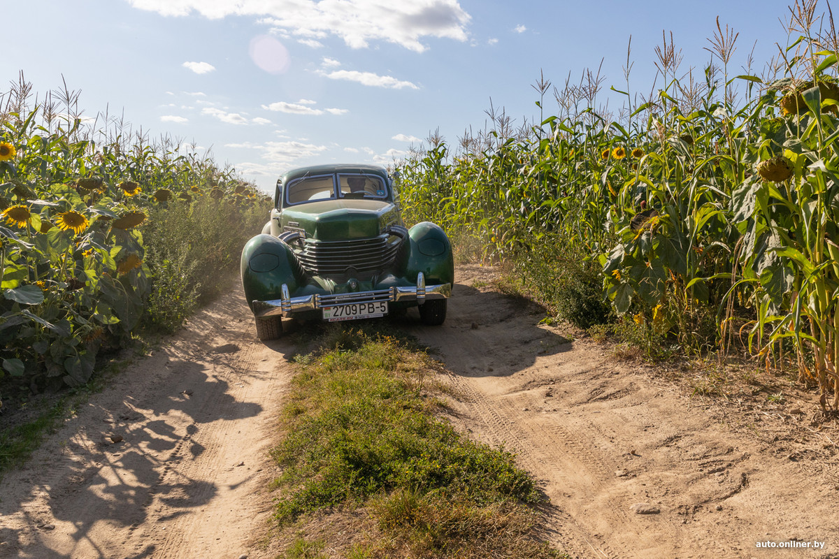 Интервью мы снимаем в поле подсолнухов. Мимо проносится старенький (хотя на фоне 88-летнего Cord он даже свежий) Volkswagen — находящийся в салоне пассажир сворачивает голову.