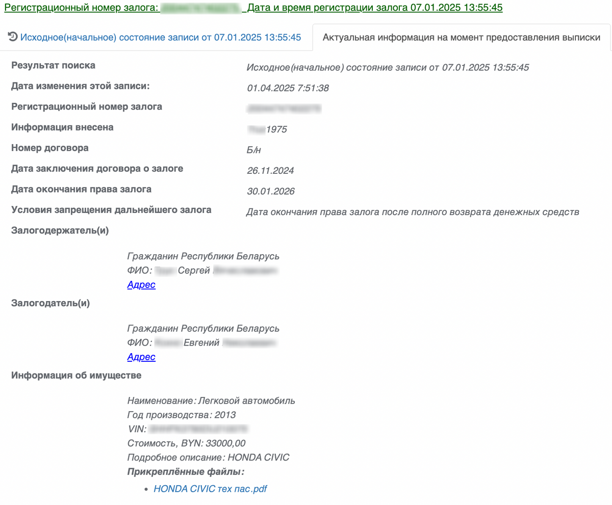 А у кого? Итак, согласно реестру, 10 октября 2024 года Civic «ушел» в автоломбард ООО «ЗаймКапитал» за 20 000 рублей, то есть сильно дешевле фактической стоимости на рынке. С учетом бэкграунда нашего героя и его страсти к онлайн-казино (о чем говорили в милиции, а также сообщали его близкие) — неудивительно.