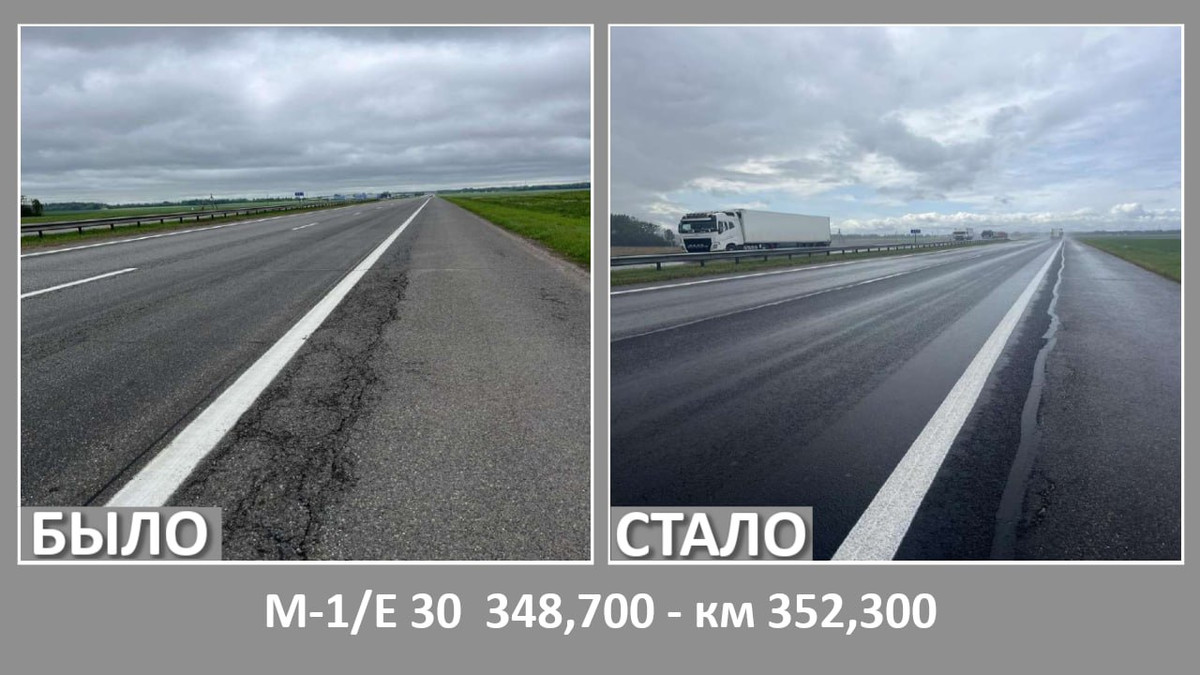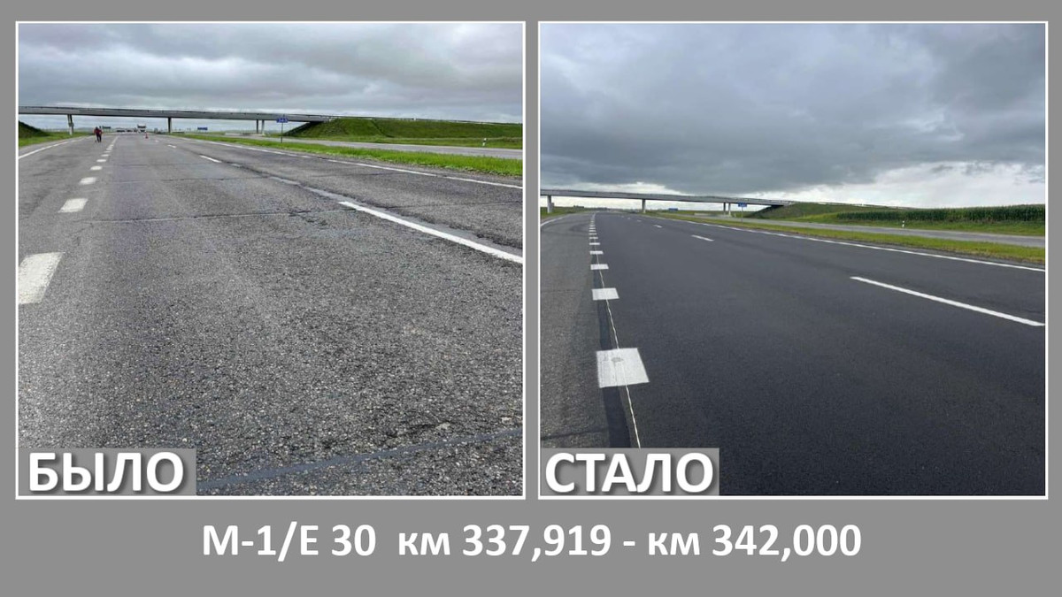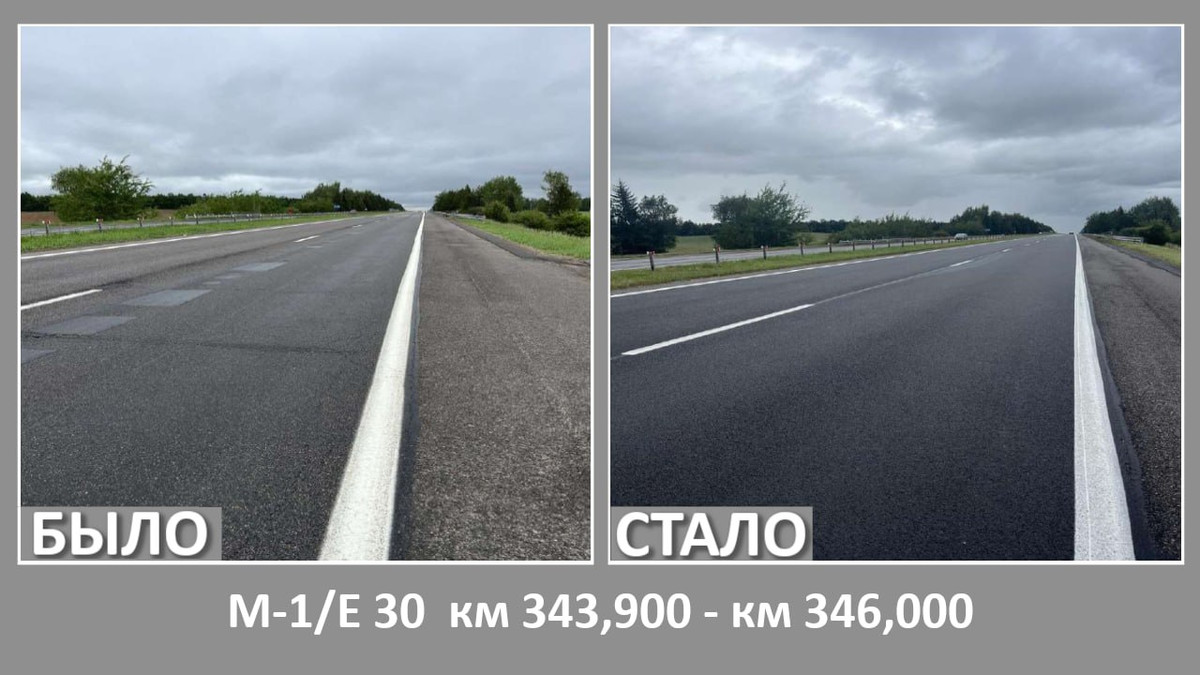 «Минскавтодор-Центр» рассказало о том, какие автомобильные дороги ремонтировались в Минской области летом. Ремонт, в частности, затронул трассу М1 (Брест — Минск — граница России).