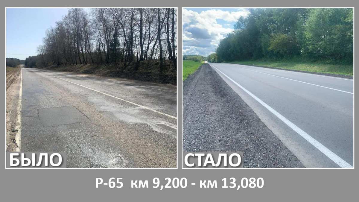 Также ремонт выполнен на трассе Р65 (Заславль — Дзержинск — Озеро) — два участка.