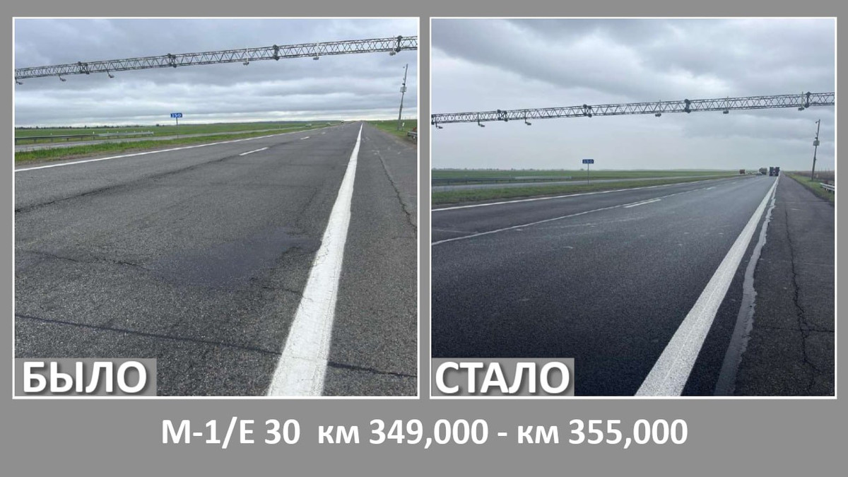 Выполнены работы по текущему ремонту дорожного покрытия на трассе М1 — четыре участка.