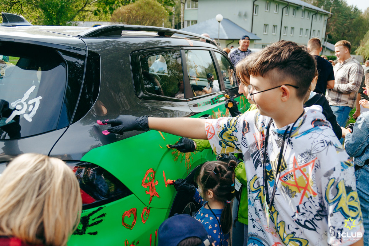 Но самое веселое — разрисовать автомобили прямо на площадке, тут уж и взрослые, и дети дали волю своей фантазии, не опасаясь последствий.